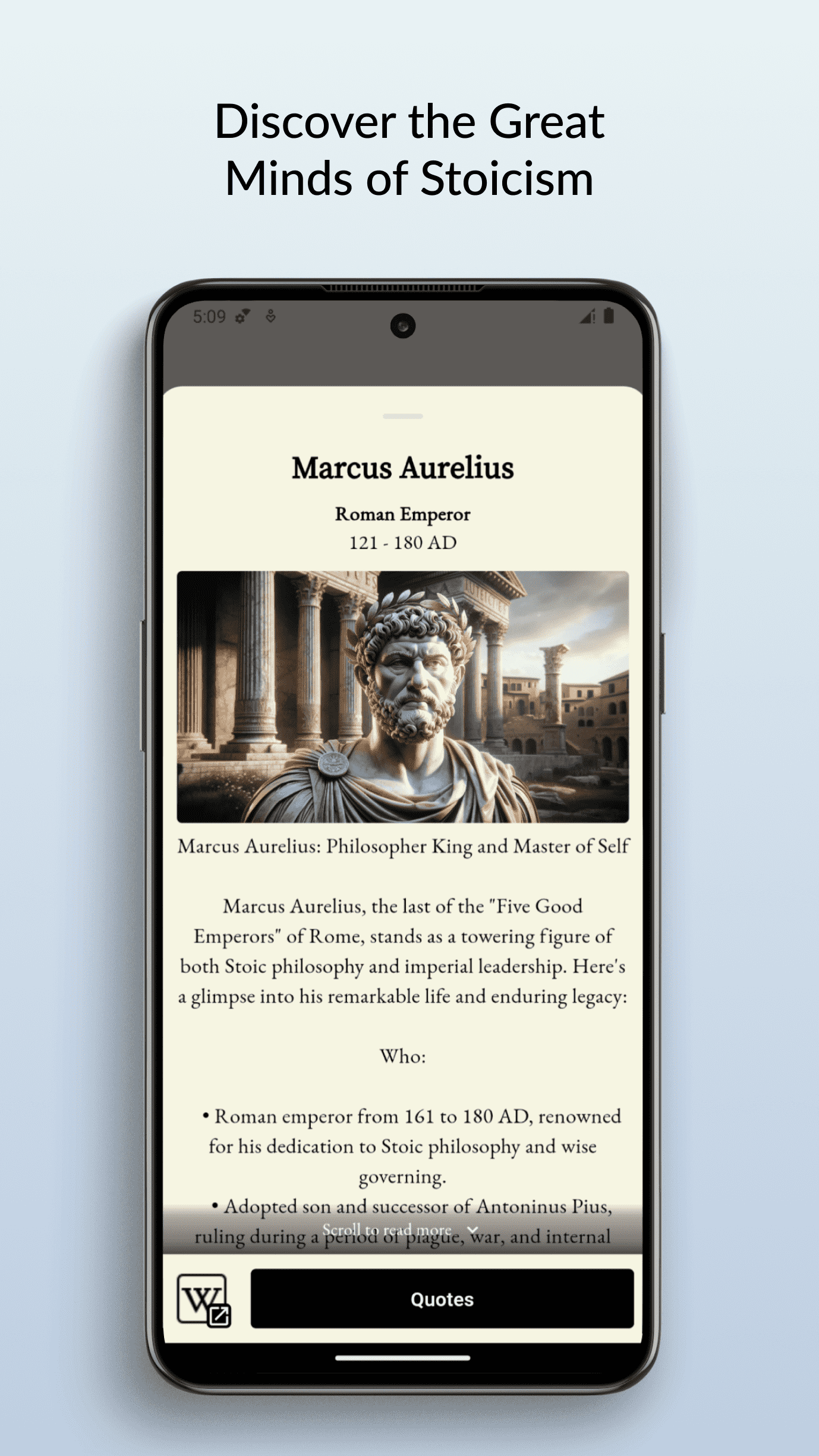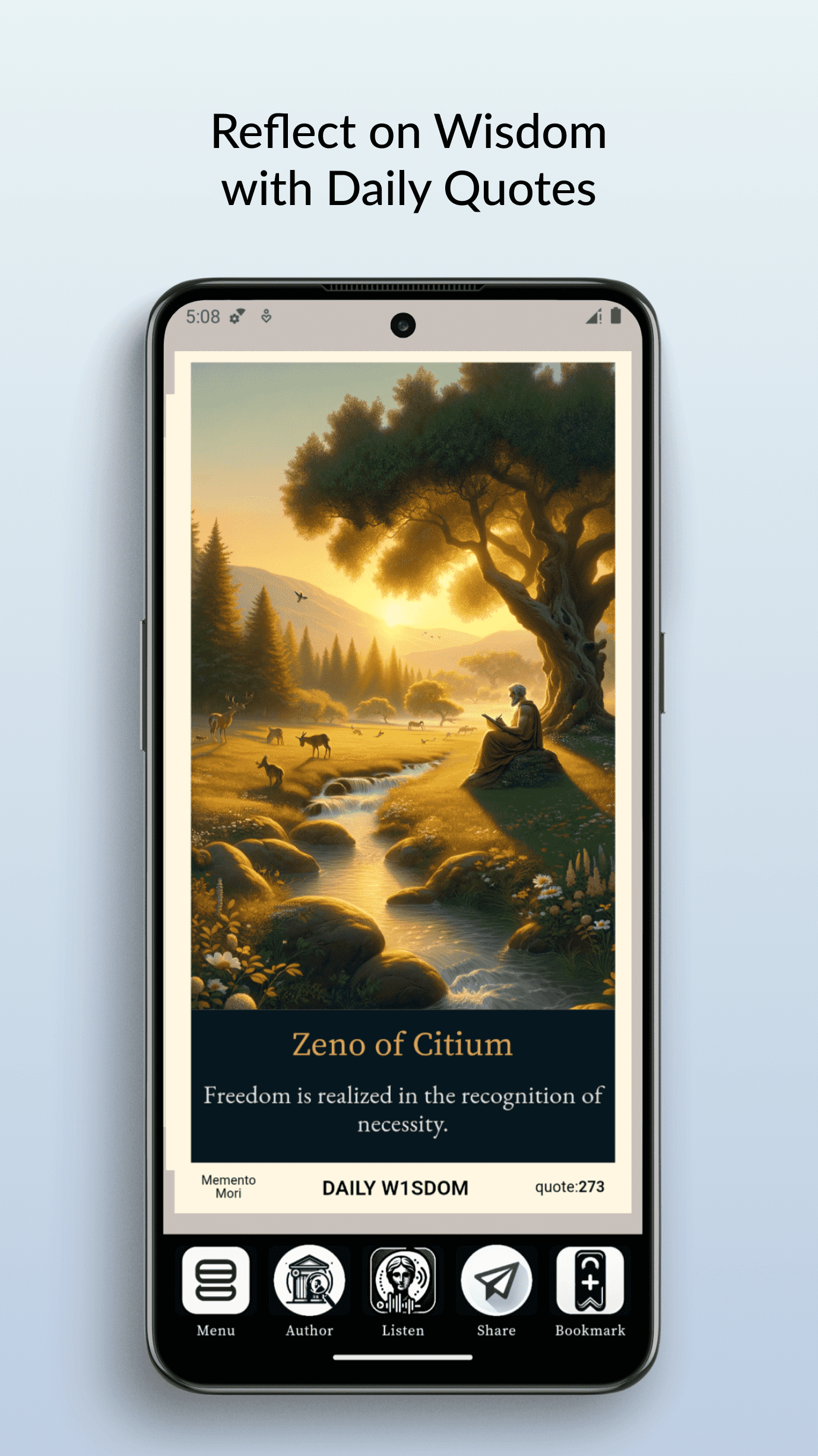 Explore the profound world of Stoicism with 'Meditations: Daily Stoic.' This elegantly designed app offers daily doses of Stoic wisdom, mindfulness practices, and philosophical exploration. Delve into the teachings of Marcus Aurelius and Seneca, bookmark your favorite insights, and share the timeless wisdom with others. A perfect companion for anyone seeking resilience and mindfulness in their daily life.